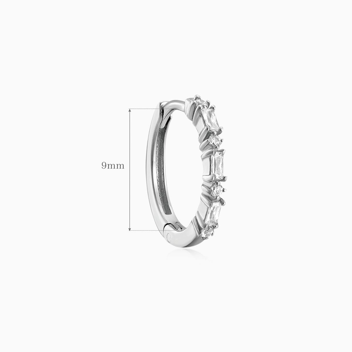 14 Karat Weißgold, 9 mm Baguette- und Rundstein-Clicker-Creolen